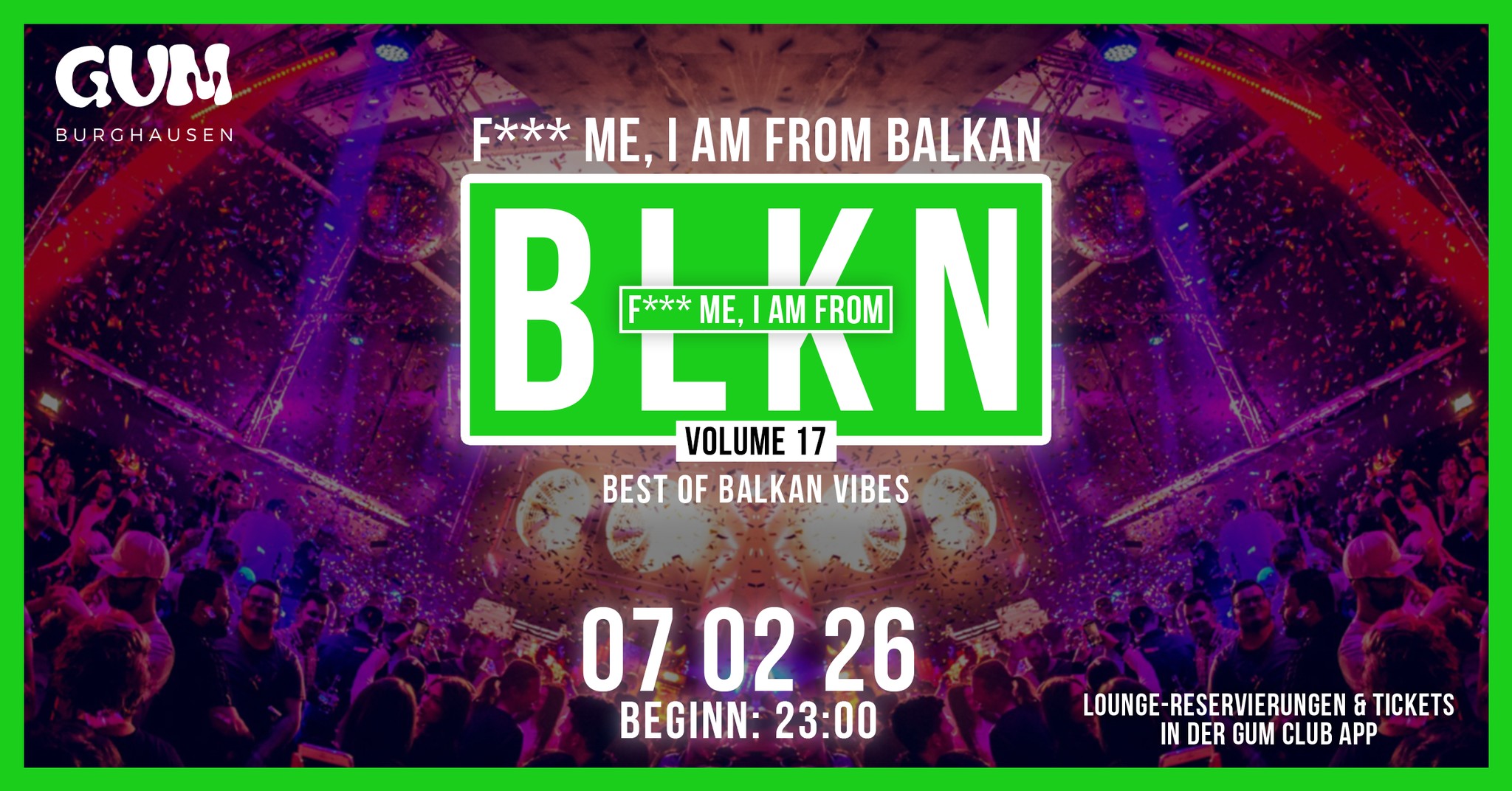 Der Countdown läuft: am Samstag den, 07.02.26 um 23 Uhr treffen zum 17.Mal die besten Beats vom Balkan, in unsere GUM EVENTHALLE ein.