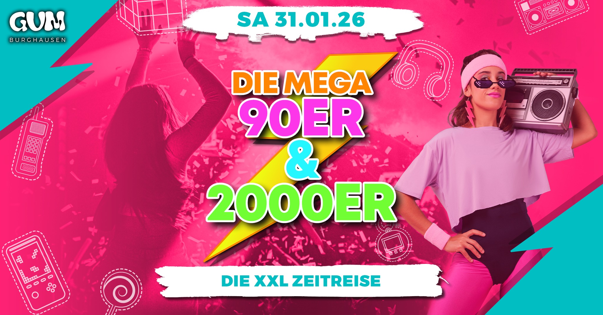 Am Samstag 31.01. feiern wir die MEGA 90er & 2000er Party in der GUM Eventhalle! Wir holen euch die 90er & 2000er zurück nach Burghausen und feiern die aufregendste Zeitreise des Jahres.