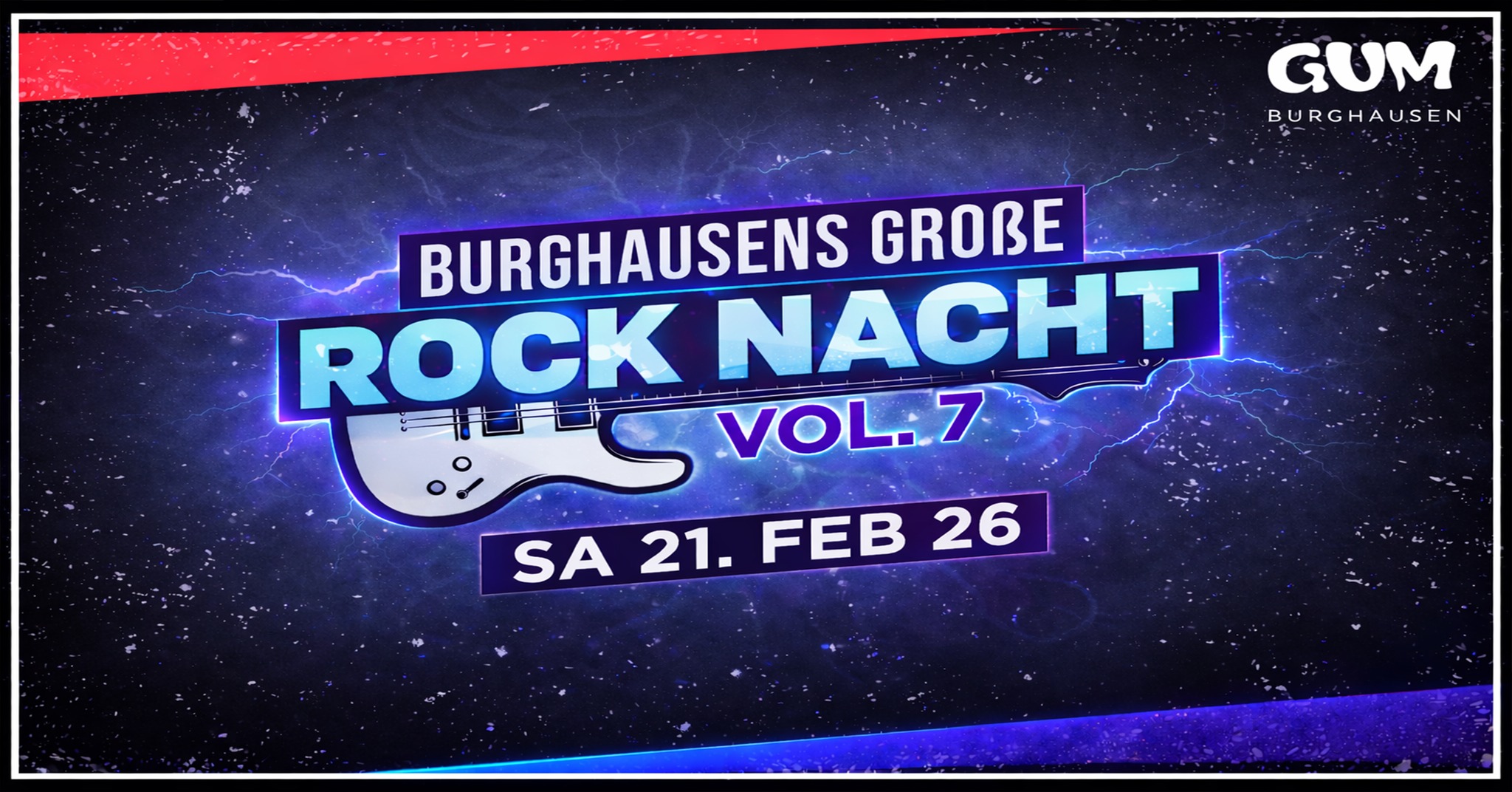 Bereit für eine Nacht voller unvergesslicher Rock-Hymnen und elektrisierender Energie? Wir präsentieren euch am 21.02.26 die Rocknacht, und bringen den legendären Sound direkt zu uns in die GUM Eventhalle!